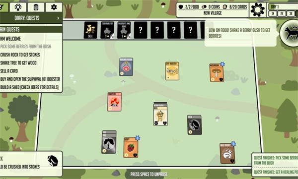 《Stacks: Village》是一款别具一格的卡牌策略生存类游戏。玩家需在荒野森林里打造村庄,探索全新大陆,制作各类物品,同时抵御敌人的侵袭。游戏中,玩家能够收集多达370余张卡牌,探寻超100种制作配方,战胜强大的首领,并且适应各种独具特色条件下的场景。