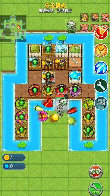 4、开启多种塔防模式,通过收集资源来升级植物,进而挑战各类高难度关卡。