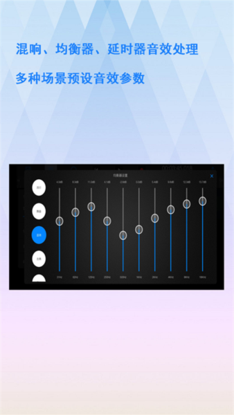 4、丰富音效预设: 包含混响、均衡器、延时器等多种预设,满足多场景需求。