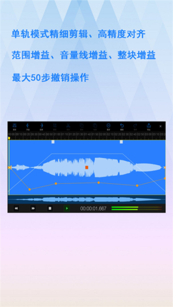 11、音量精细控制: 音轨增益调整,局部音量增益编辑,让每个细节尽在掌控。